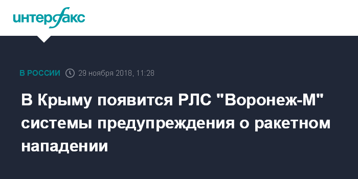 Москва. 29 ноября. INTERFAX.RU - Строительство новой радиолокационной станции (РЛС) "Воронеж-М" системы предупреждения о ракетном нападении (СПРН) планируется начать в районе Севастополя в 2019 году, сообщил "Интерфаксу" источник в силовых структурах региона.