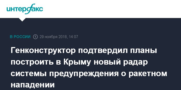 Ранее во вторник о строительстве РЛС "Воронеж-М" в районе Севастополя сообщил "Интерфаксу" источник в силовых структурах региона. По его сведениям, работы предполагается начать в 2019 году.