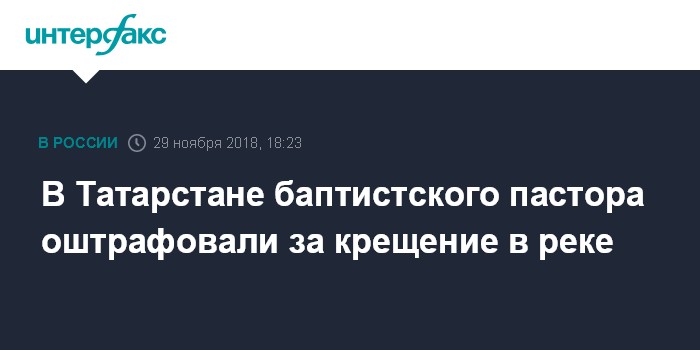 Москва. 29 ноября. INTERFAX.RU - Набережночелнинский городской суд оштрафовал местного пастора церкви евангельских христиан "Возрождение" Леонида Поворова за крещение верующих в реке Каме, приравняв обряд к собранию, сообщается на сайте суда.