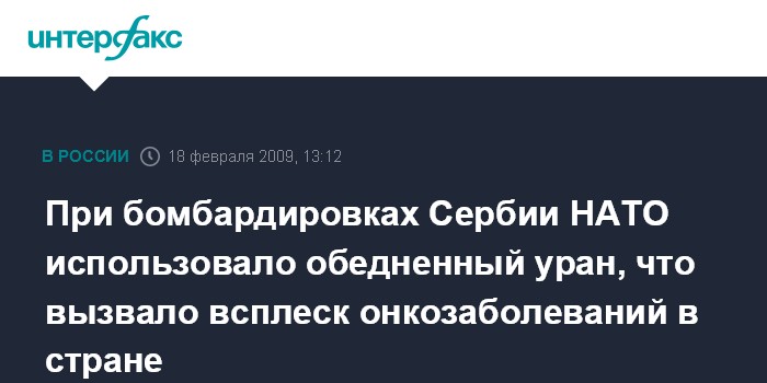 При бомбардировках Сербии НАТО использовало обедненный уран, что вызвало всплеск онкозаболеваний в стране