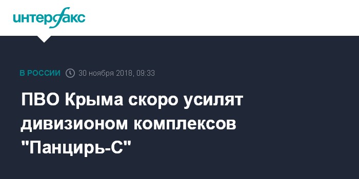 Москва. 30 ноября. INTERFAX.RU - Новый дивизион комплексов противовоздушной обороны (ПВО) ближнего действия "Панцирь-С" будет развернут в Крыму до конца этого года, сообщил начальник пресс-службы Южного военного округа (ЮВО) полковник Вадим Астафьев.