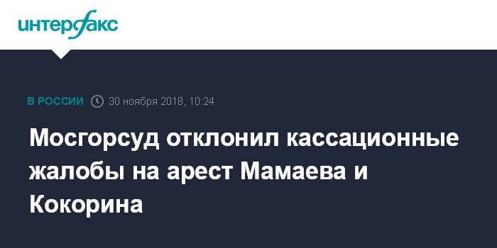 Москва. 30 ноября. INTERFAX.RU - Президиум Мосгорсуда не будет рассматривать кассационные жалобы на арест полузащитника "Краснодара" Павла Мамаева и нападающего "Зенита" Александра Кокорина.