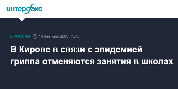 Москва. 18 февраля. INTERFAX.RU - В связи с массовой заболеваемостью ОРВИ и гриппом в Кирове распущены на учебную неделю классы в нескольких общеобразовательных школах, лингвистической гимназии, Вятской православной гимназии.