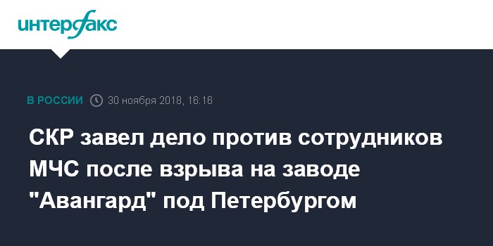 СКР завел дело против сотрудников МЧС после взрыва на заводе "Авангард" под Петербургом