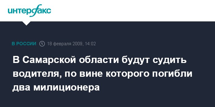 Москва. 18 февраля. INTERFAX.RU - Красноярский районный суд Самарской области рассмотрит дело водителя "Газели", врезавшейся в машину с двумя милиционерами, которые в результате аварии получили травмы, несовместимые с жизнью.