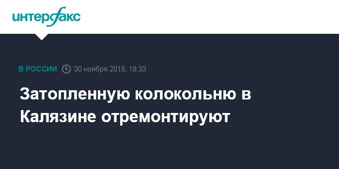 Москва. 30 ноября. INTERFAX.RU - Реставрация одной из главных достопримечательностей Тверской области - колокольни затопленного Николаевского собора в городе Калязине будет произведена за счет регионального бюджета, сообщил журналистам губернатор региона Игорь Руденя.