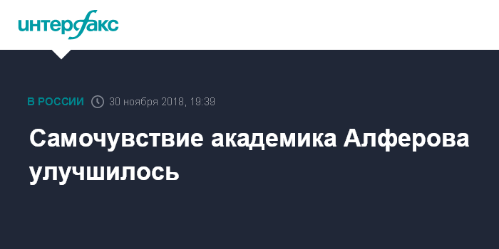 Москва. 30 ноября. INTERFAX.RU - Академик, нобелевский лауреат Жорес Алферов идет на поправку, подозрения на инсульт не подтвердились, заявили "Интерфаксу" в пресс-службе Российской академии наук.