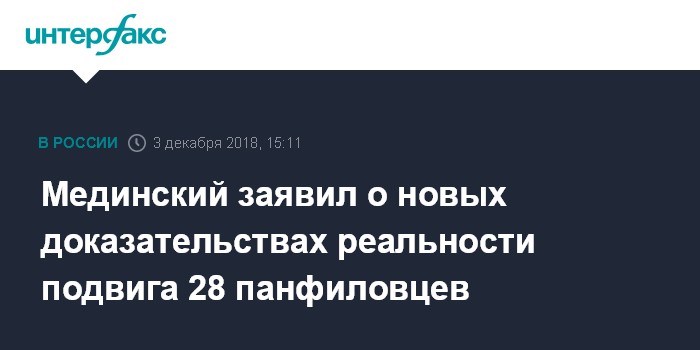 Ранее в своей статье, опубликованной в "Российской газете", Мединский отметил, что рассекреченные архивные материалы содержат три новых свидетельства того, что бой 28 панфиловцев был, а также два новых описания боя. Кроме того, Мединский сообщил, что в рассекреченных материалах содержатся "многочисленные подробности обстоятельств вокруг подвига, например, слова политрука Клочкова "Отступать некуда".