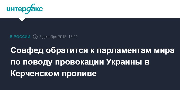 Совфед обратится к парламентам мира по поводу провокации Украины в Керченском проливе