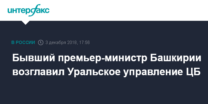 Бывший премьер-министр Башкирии возглавил Уральское управление ЦБ
