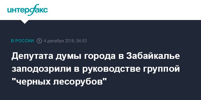 Москва. 4 декабря. INTERFAX.RU - Следственные органы СКР по Забайкальскому краю привлекли в качестве подозреваемого и задержали депутата думы городского округа "Город Петровск-Забайкальский" по делу о незаконных рубках леса, сообщает СУ СКР по региону.