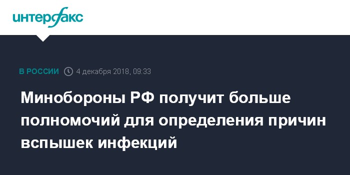 Минобороны РФ получит больше полномочий для определения причин вспышек инфекций