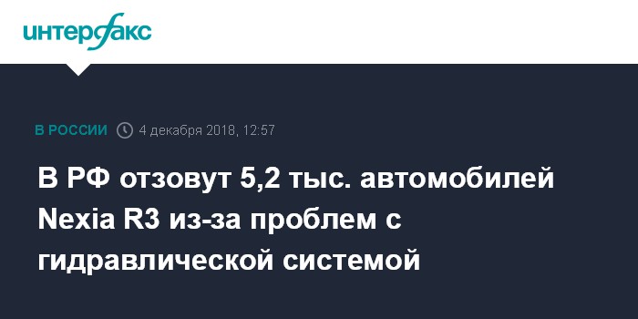 В РФ отзовут 5,2 тыс. автомобилей Nexia R3 из-за проблем с гидравлической системой