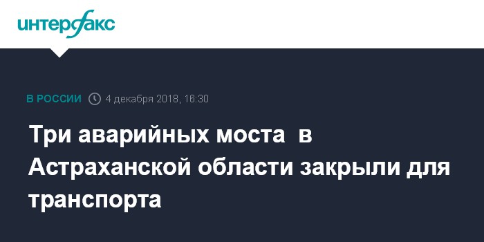 Москва. 4 декабря. INTERFAX.RU - Движение по трем мостам регионального значения "Сеитовка - Ватажное - граница Казахстана" в Красноярском районе Астраханской области ограничено из-за их аварийного состояния, сообщает ГУ МЧС по региону во вторник.