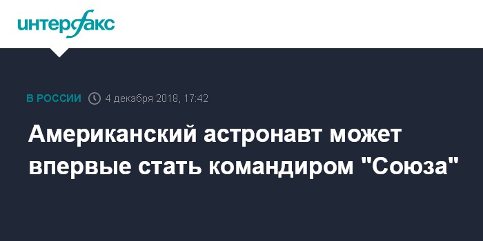 Москва. 4 декабря. INTERFAX.RU - Американский астронавт Ник Хейг, аварийно вернувшийся на Землю после неудачного запуска "Союза" в октябре, осенью 2019 года при возвращении с МКС может впервые в истории стать командиром корабля "Союз".
