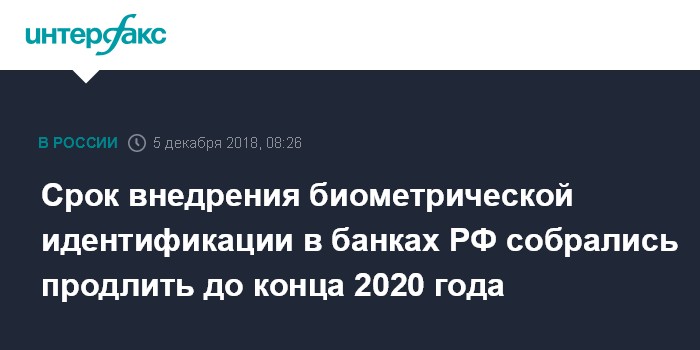 Срок внедрения биометрической идентификации в банках РФ собрались продлить до конца 2020 года