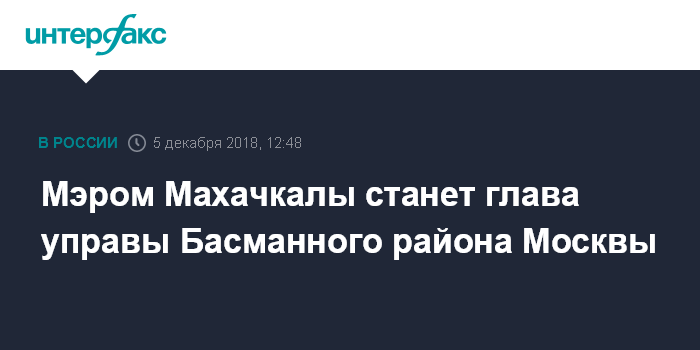 Мэром Махачкалы станет глава управы Басманного района Москвы