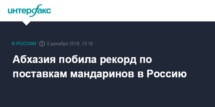 "Первые партии начали ввозить в середине октября. В конце ноября и начале декабря поставки в Россию увеличились, в среднем в сутки на таможенном посту "Псоу" на российско-абхазской границе оформляется порядка 400 тонн продукции", - добавил он.
