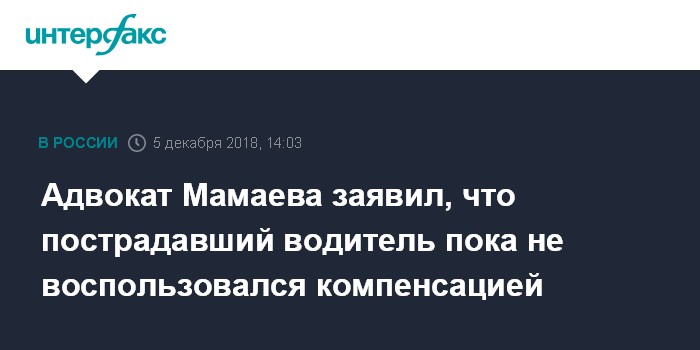 Адвокат Мамаева заявил, что пострадавший водитель пока не воспользовался компенсацией