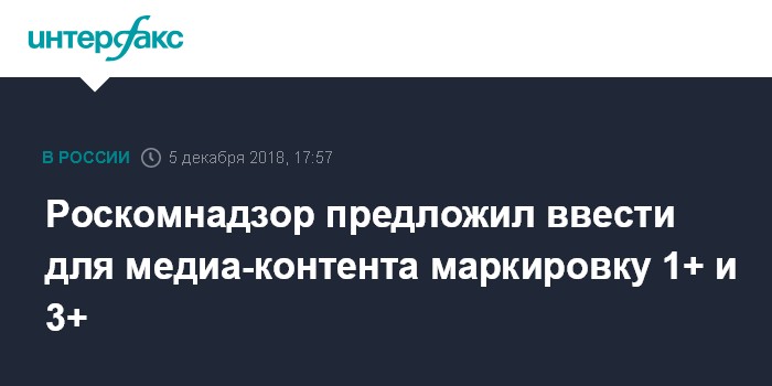 Роскомнадзор предложил ввести для медиа-контента маркировку 1+ и 3+
