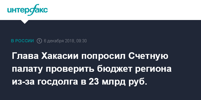 Глава Хакасии попросил Счетную палату проверить бюджет региона из-за госдолга в 23 млрд руб.