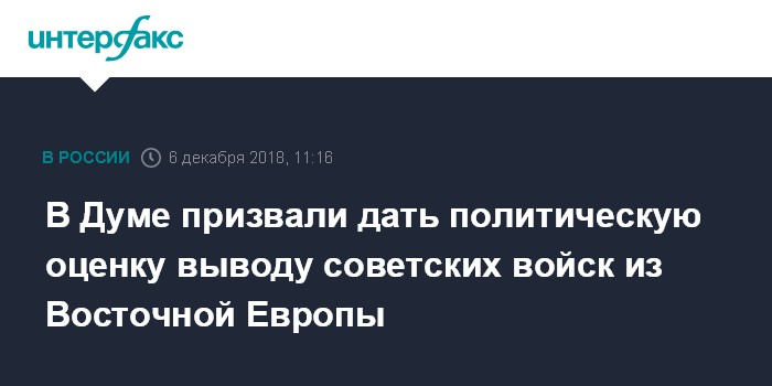 В Думе призвали дать политическую оценку выводу советских войск из Восточной Европы