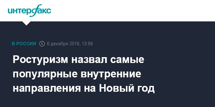 Москва. 6 декабря. INTERFAX.RU - Москва, Сочи, Симферополь, Краснодар и Санкт-Петербург стали самыми популярными внутренними направлениями отдыха россиян на новогодние каникулы по данным онлайн-сервисов поиска и продажи авиабилетов, сообщил в четверг журналистам советник главы Ростуризма Андрей Монаков.