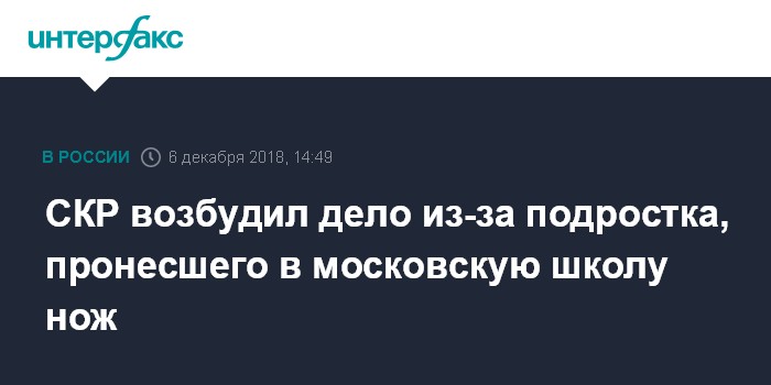 СКР возбудил дело из-за подростка, пронесшего в московскую школу нож