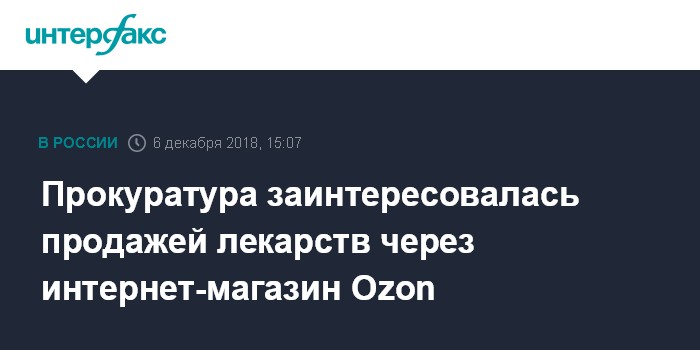 Москва. 6 декабря. INTERFAX.RU - По поручению Генпрокуратуры России начата проверка в связи с продажей лекарств в интернет-магазине Ozon.ru, сообщили "Интерфаксу" в пресс-службе надзорного ведомства.