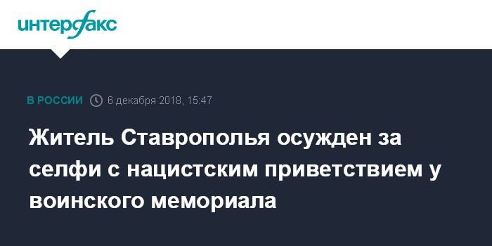 "Судом установлено, что мужчина, находясь в поселке Рыздвяный Изобильненского района, сделал селфи с жестом нацистского приветствия на фоне мемориала воинам-освободителям и выложил у себя на страничке во "ВКонтакте", - говорится в сообщении.