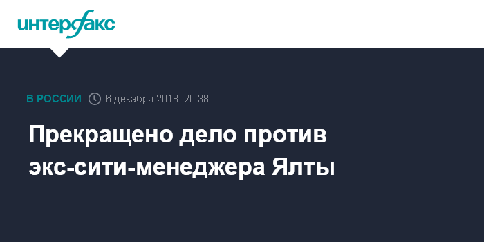 Москва. 6 декабря. INTERFAX.RU - Адвокат бывшего главы администрации Ялты Андрея Ростенко Юрий Авдеев сообщил о прекращении следователями уголовного дела в отношении его подзащитного в связи с отсутствием состава преступления.