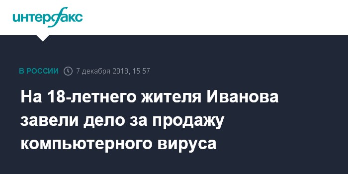 На 18-летнего жителя Иванова завели дело за продажу компьютерного вируса