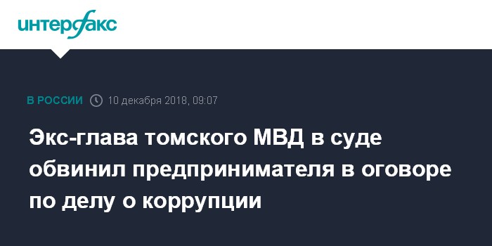 Экс-глава томского МВД в суде обвинил предпринимателя в оговоре по делу о коррупции
