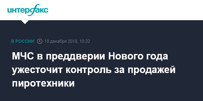 Москва. 10 декабря. INTERFAX.RU - Глава МЧС РФ Евгений Зиничев в преддверии Нового года заявил о необходимости усилить контроль за продажей и использованием пиротехники.