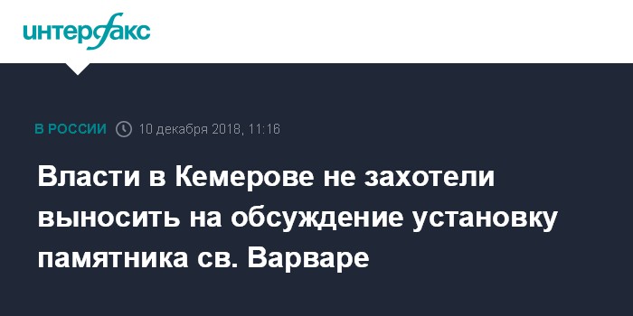 Власти в Кемерове не захотели выносить на обсуждение установку памятника св. Варваре