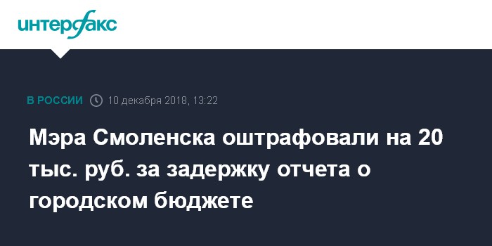 Мэра Смоленска оштрафовали на 20 тыс. руб. за задержку отчета о городском бюджете