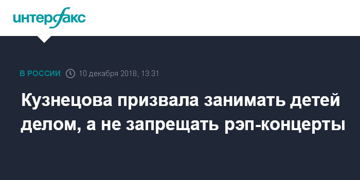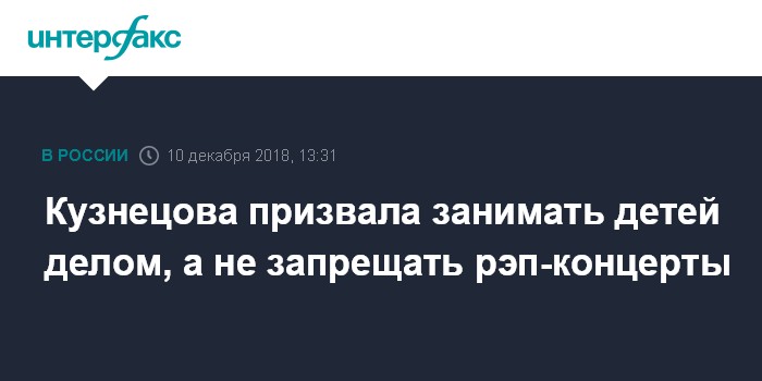 Москва. 10 декабря. INTERFAX.RU - Детский омбудсмен РФ Анна Кузнецова заявила, что необходимости в отмене рэп-концертов нет.