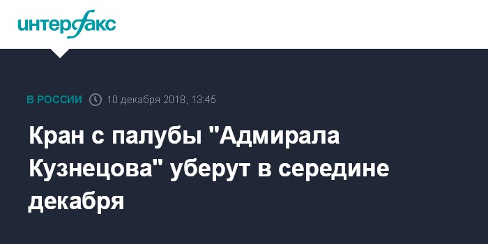 Кран с палубы "Адмирала Кузнецова" уберут в середине декабря
