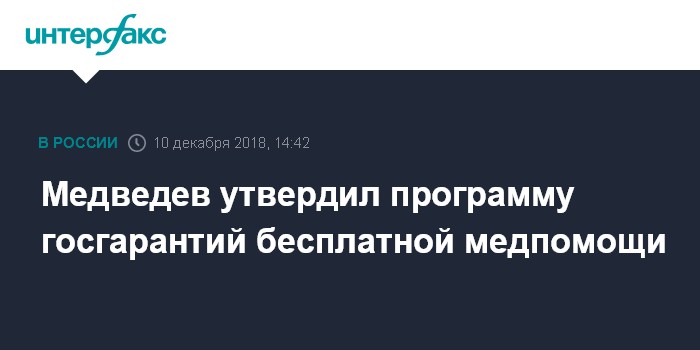 "Я утвердил программу госгарантий бесплатного оказания гражданам медицинской помощи на ближайшие три года, то есть это период 2019 и плановый период 2020 и 2021 годов", - сказал Медведев на совещании с вице-премьерами.