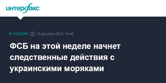 Москва. 10 декабря. INTERFAX.RU - Федеральная служба безопасности РФ начинает проведение следственных действий с украинскими моряками, которые были арестованы по делу о незаконном пересечении границы после инцидента в районе Керченского пролива и доставлены в Москву.