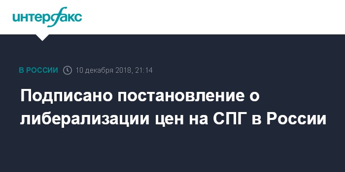 "Постановление отменяет государственное регулирование цен на природный газ, реализуемый ПАО "Газпром" с применением технологии по сжижению газа или его регазификации, только при поставках газа промышленным и коммерческим потребителям. Применение рыночной цены позволит обеспечить растущий платежеспособный спрос на такой товар и будет стимулировать реализацию инвестиционных проектов газификации с применением СПГ. В целом это будет способствовать увеличению конкуренции на рынке энергоресурсов", - заявил вице-премьер.