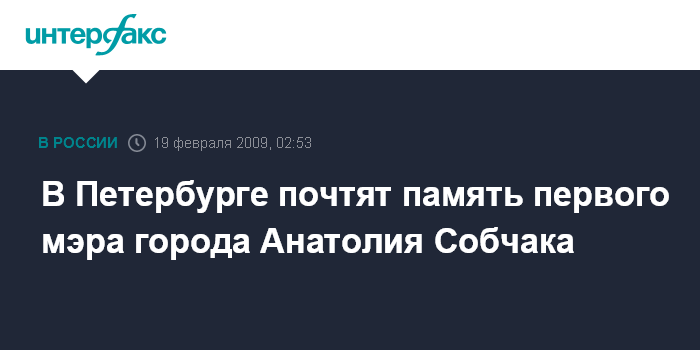 Санкт-Петербург. 19 февраля. ИHТЕРФАКС СЕВЕРО-ЗАПАД - В Петербурге в четверг пройдут мероприятия памяти первого мэра северной столицы Анатолия Собчака.