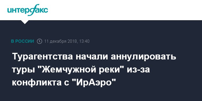 Турагентства начали аннулировать туры "Жемчужной реки" из-за конфликта с "ИрАэро"