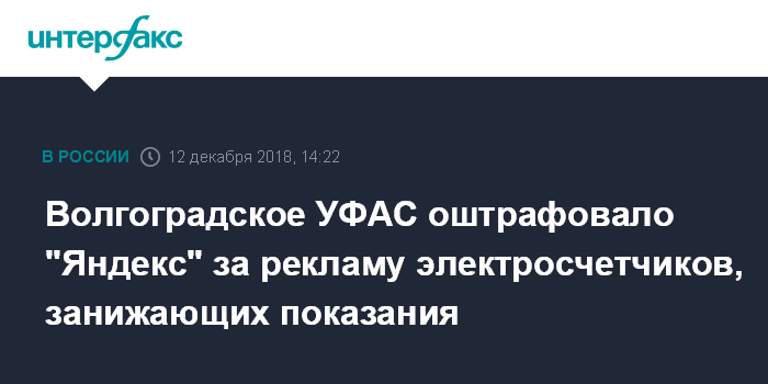 Волгоградское УФАС оштрафовало "Яндекс" за рекламу электросчетчиков, занижающих показания