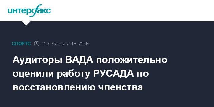 Москва. 12 декабря. INTERFAX.RU - Генеральный директор Всемирного антидопингового агентства Оливье Ниггли после окончания аудита Российского антидопингового агентства положительно оценил проведенную работу по восстановлению членства РУСАДА, сообщает пресс-служба ВАДА в среду.