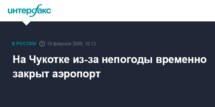 Москва. 19 февраля. INTERFAX.RU - На Чукотке в связи с ухудшением погоды в четверг объявлено штормовое предупреждение, из-за сильного ветра временно закрыт аэропорт.