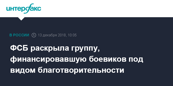 Москва. 13 декабря. INTERFAX.RU - ФСБ России пресекла деятельность группировки, финансировавшей под видом благотворительности боевиков запрещенных в РФ международных террористических организаций ИГ и "Джабхат ан-Нусра".