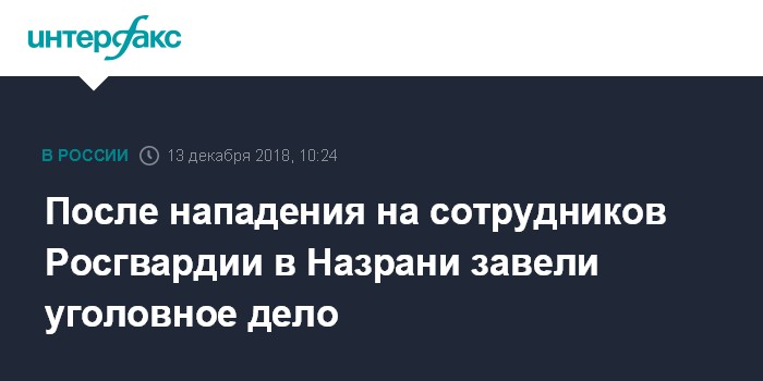 Москва. 13 декабря. INTERFAX.RU - Уголовное дело о посягательстве на жизнь сотрудников правоохранительных органов возбуждено по факту нападения накануне на сотрудников Росгвардии в Ингушетии, сообщили в региональном управлении Следственного комитета (СК РФ).