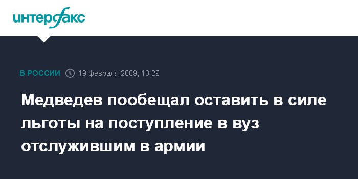 Медведев пообещал оставить в силе льготы на поступление в вуз отслужившим в армии