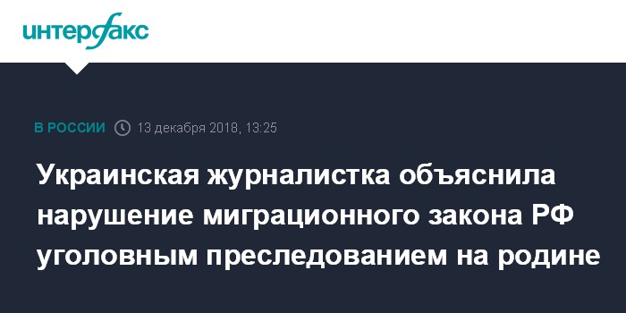 Украинская журналистка объяснила нарушение миграционного закона РФ уголовным преследованием на родине